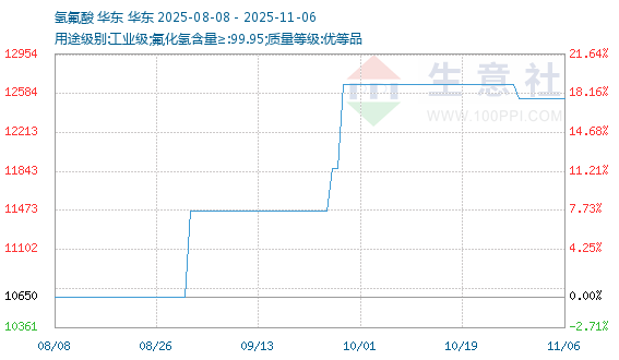 11月6日生意社氢氟酸基准价为12533.33元/吨