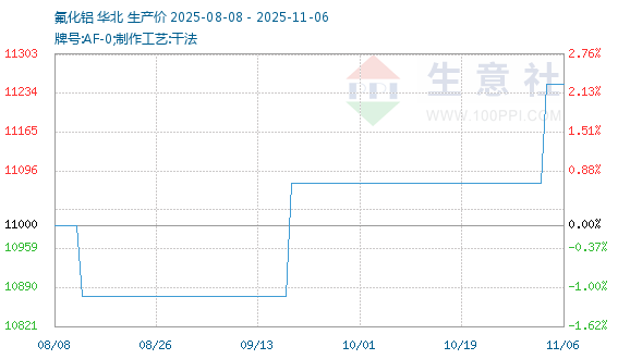 11月3日生意社氟化铝基准价为11075.00元/吨